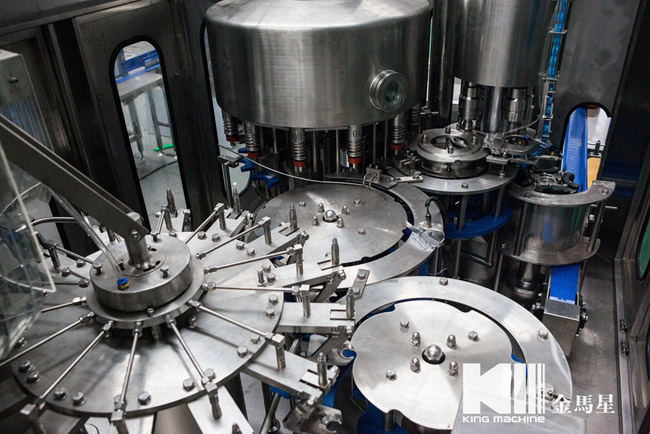 飲用水灌裝機(jī)集沖洗、灌裝、旋蓋于一體,全過(guò)程自動(dòng)化運(yùn)行,主要適用礦泉水、純凈水等不含氣飲料的沖瓶、灌裝、封口連續(xù)作業(yè)。本機(jī)大部分電器系統(tǒng)零件均采用國(guó)外優(yōu)良產(chǎn)品,所有與液料接觸的地方均采用優(yōu)質(zhì)的不銹鋼材料制作,主關(guān)鍵部件采用數(shù)控機(jī)床精密加工, 整機(jī)光電檢測(cè)各部件的運(yùn)行狀況,無(wú)瓶不灌裝,無(wú)瓶不送蓋,自動(dòng)化程度高,操作簡(jiǎn)易,具有耐磨、穩(wěn)定、故障率低等特點(diǎn),產(chǎn)品質(zhì)量處于行業(yè)前列,是新老飲料投資者的選擇。