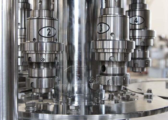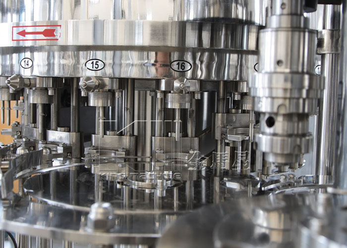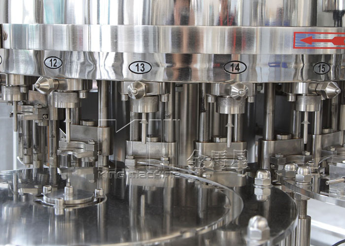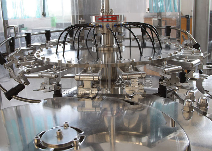飲用水灌裝機(jī)集沖洗、灌裝、旋蓋于一體,全過程自動(dòng)化運(yùn)行,主要適用礦泉水、純凈水等不含氣飲料的沖瓶、灌裝、封口連續(xù)作業(yè)。本機(jī)大部分電器系統(tǒng)零件均采用國(guó)外優(yōu)良產(chǎn)品,所有與液料接觸的地方均采用優(yōu)質(zhì)的不銹鋼材料制作,主關(guān)鍵部件采用數(shù)控機(jī)床精密加工, 整機(jī)光電檢測(cè)各部件的運(yùn)行狀況,無瓶不灌裝,無瓶不送蓋,自動(dòng)化程度高,操作簡(jiǎn)易,具有耐磨、穩(wěn)定、故障率低等特點(diǎn),產(chǎn)品質(zhì)量處于行業(yè)前列,是新老飲料投資者的選擇。