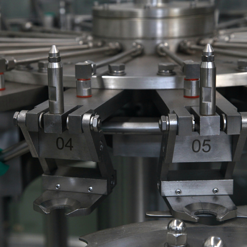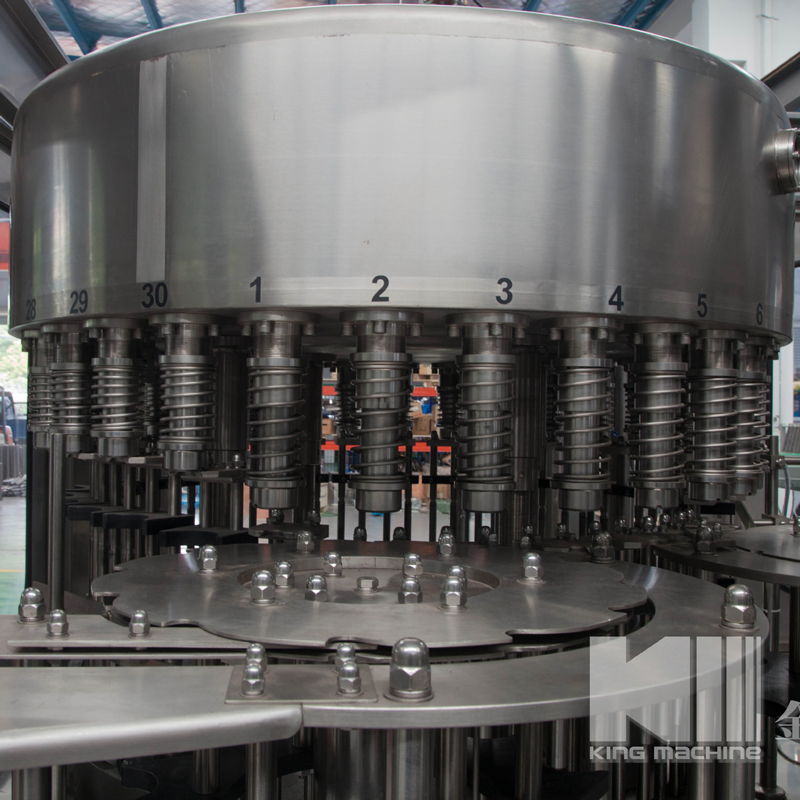 飲用水灌裝機(jī)集沖洗、灌裝、旋蓋于一體,全過(guò)程自動(dòng)化運(yùn)行,主要適用礦泉水、純凈水等不含氣飲料的沖瓶、灌裝、封口連續(xù)作業(yè)。本機(jī)大部分電器系統(tǒng)零件均采用國(guó)外優(yōu)良產(chǎn)品,所有與液料接觸的地方均采用優(yōu)質(zhì)的不銹鋼材料制作,主關(guān)鍵部件采用數(shù)控機(jī)床精密加工, 整機(jī)光電檢測(cè)各部件的運(yùn)行狀況,無(wú)瓶不灌裝,無(wú)瓶不送蓋,自動(dòng)化程度高,操作簡(jiǎn)易,具有耐磨、穩(wěn)定、故障率低等特點(diǎn),產(chǎn)品質(zhì)量處于行業(yè)前列,是新老飲料投資者的選擇。